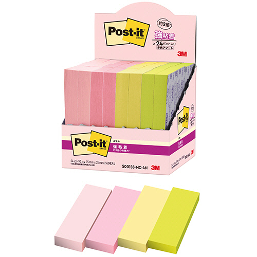 ●75×25mmの強粘着ふせん。90枚×24冊パック。