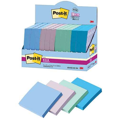 ●75×75mmのノートサイズ・強粘着ふせん。90枚×12冊パック。