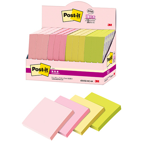●75×75mmのノートサイズ・強粘着ふせん。90枚×12冊パック。