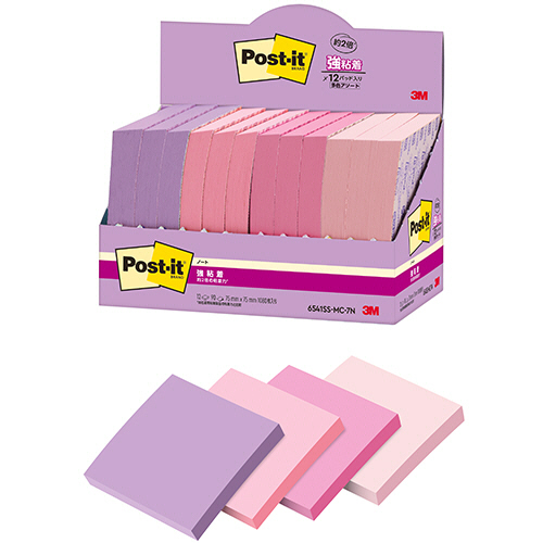 ●75×75mmのノートサイズ・強粘着ふせん。90枚×12冊パック。<