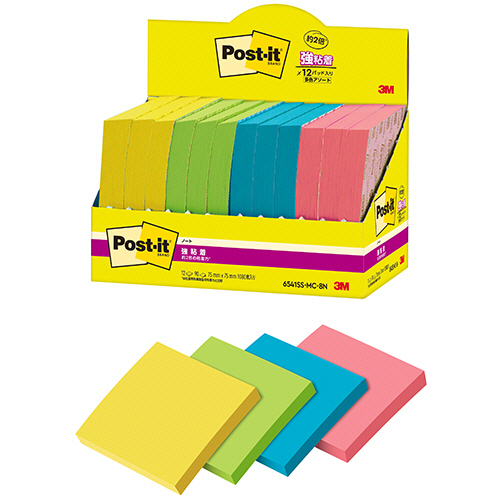 ●75×75mmのノートサイズ・強粘着ふせん。90枚×12冊パック。