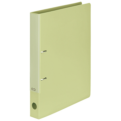 ●片手でひねるだけの簡単オープン、Dリングファイル。色はライトグリーンです。