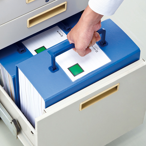 ●背見出し紙/両面印刷(赤/青・緑/黄の4色入)、抜き差し可能