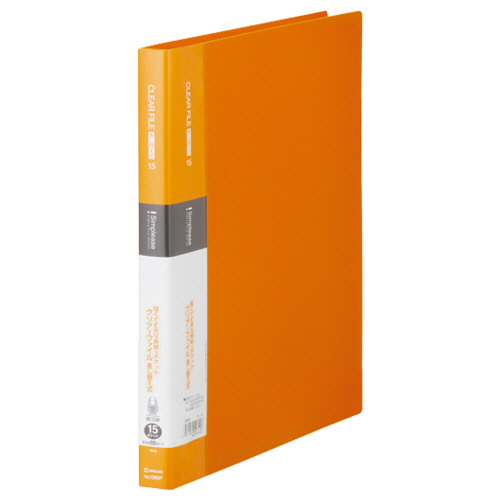 ●台紙は表紙と同系色。A4タテ型背幅25mm、オレンジのクリアーファイルです。