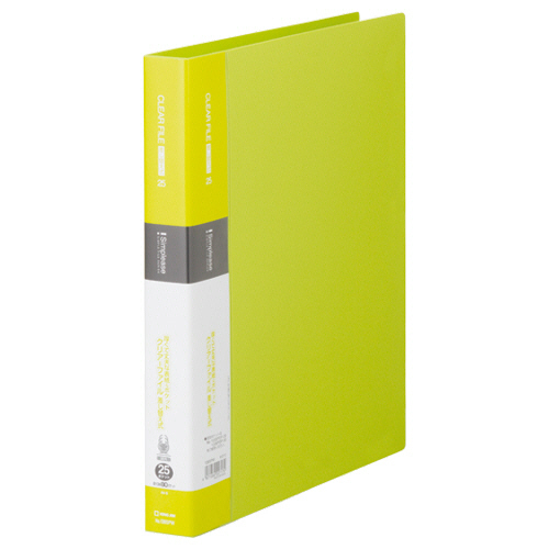 ●台紙は表紙と同系色。A4タテ型背幅36mm、黄緑のクリアーファイルです。