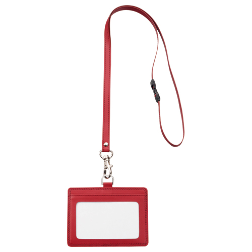 合皮製ネームカードホルダー ヨコ型 ストラップ付 ワインレッド 1個 【5-8営業日遅延】