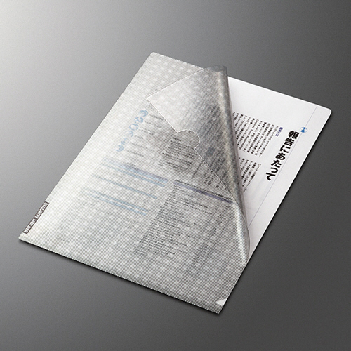 表面の地紋印刷により書類内容を見えにくくした、セキュリティ仕様のクリヤーホルダー。