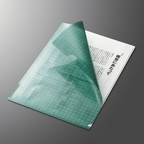 表面の地紋印刷により書類内容を見えにくくした、セキュリティ仕様のクリヤーホルダー。