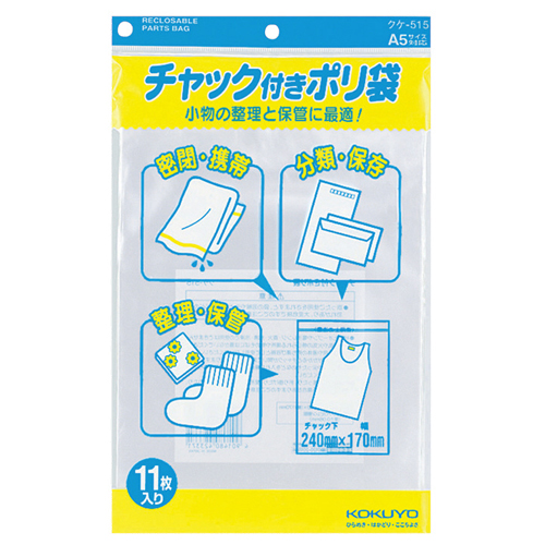 チャックで密閉できるポリ袋。