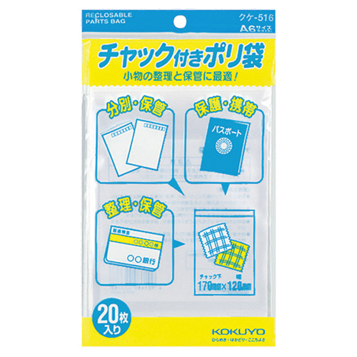●チャックで密閉できるので、防湿・防じん効果が高く、書類・カタログや部品・サンプルなどの保存や保管に好適です。