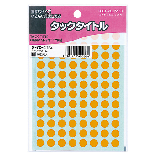 タックタイトル 丸ラベル 直径8mm 橙 1セット(16320片:1632片×10パック)