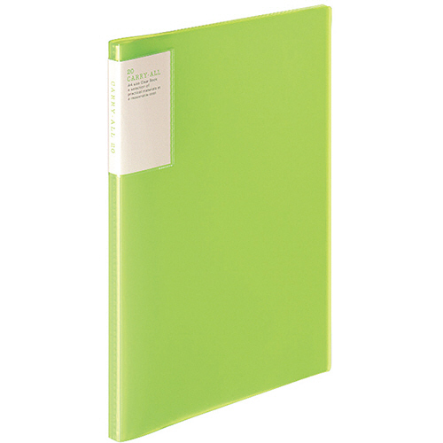クリヤーブック(キャリーオール)固定式・背ポケット A4タテ 20ポケット 背幅13mm 黄緑 1セット(6冊)
