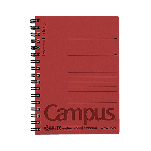 ●折り返しても使いやすい、丈夫な色厚板紙を使用したミニサイズのキャンパスツインリングノートです。A6サイズ・B罫、表紙色は赤、5冊セットです。