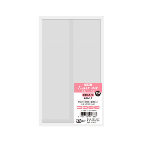 合掌貼りと呼ばれる平袋タイプのガス袋。サイズは厚さ0.06×幅85×高さ150mmです。