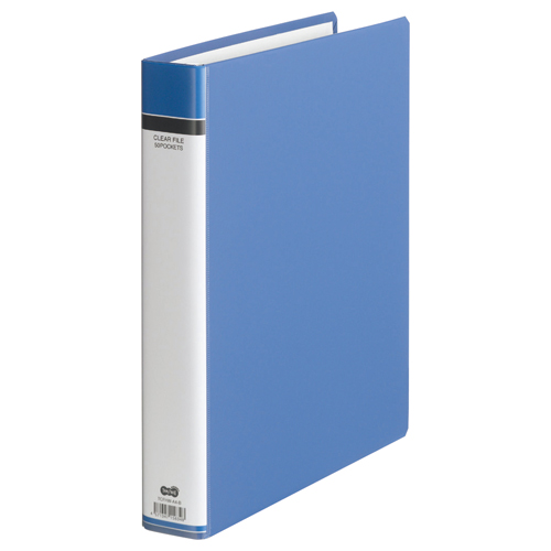 ●丁寧な造りの「貼り表紙」。最大収容枚数:約130枚、青のクリヤーファイル。100冊のセットです。