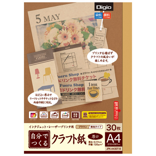 インクジェット・レーザープリンタ用 自分でつくるクラフト紙 A4 厚口 ブラウン 1冊(30枚)