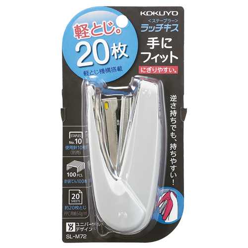 【ユニバーサルデザイン】手にフィットして持ちやすい、軽とじステープラー。