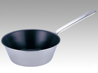 モリブデン鋼。業務用電磁調理器に最適な極厚底単層構造に内面ストロングコート加工(純フッ素樹脂2コート加工)でお手入れが簡単。こびり付き易い食材も簡単に洗浄でき、お手入れが簡単です。あらゆる熱源に対応。ガス火はもちろん業務用電磁調理器には特にお勧めです。※蓋は