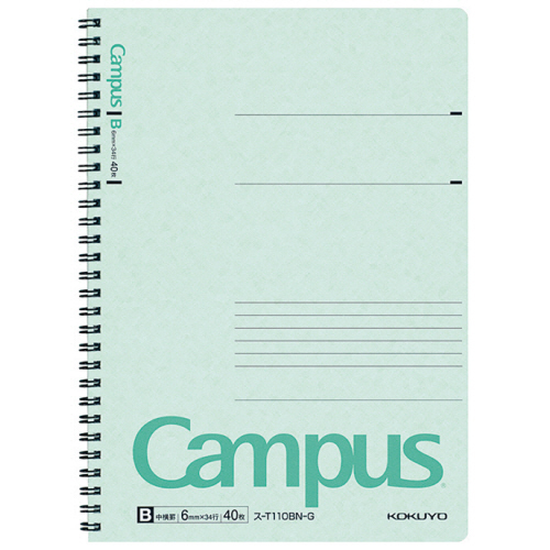 ●折り返して使えるツインリングタイプのキャンパスノートB罫・セミB5サイズです。表紙色・緑の80冊セットです。