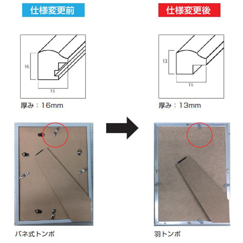 ●材質/フレーム:樹脂製(PS)アルミ調塗装、透明板:PETシート、裏板・スタンド:MDF