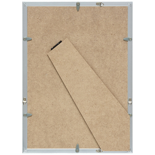 ●材質/フレーム:樹脂製(PS)アルミ調塗装、透明板:PETシート、裏板・スタンド:MDF
