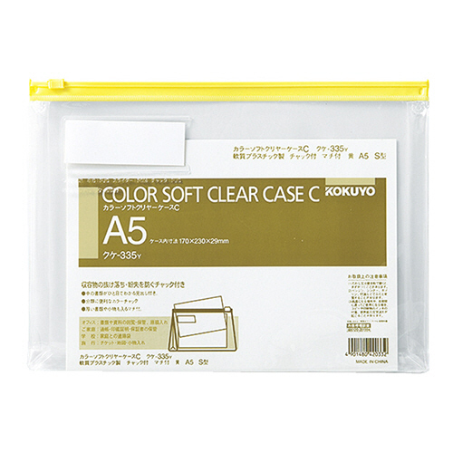 収容書類の抜け落ち・紛失を防ぐチャック付きのソフトクリヤーケース。