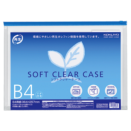 ソフトクリヤーケース(再生オレフィンタイプ・マチ付) B4 青 1セット(20枚)