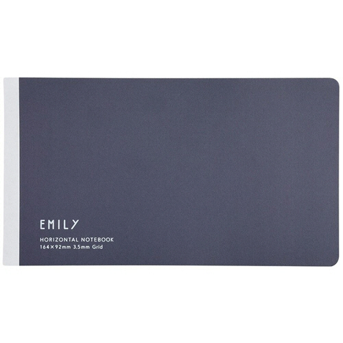 ●パソコン前のスペースにも広げられるスマートな横長タイプのノート、ネイビーの5冊です。