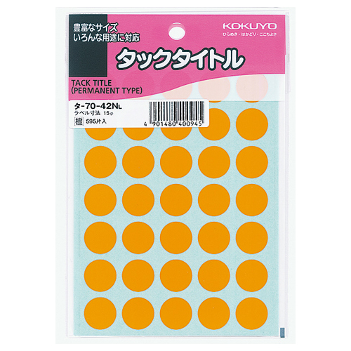 タックタイトル 丸ラベル 直径15mm 橙 1セット(5950片:595片×10パック)