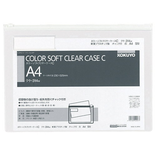 収容書類の抜け落ち・紛失を防ぐチャック付きのソフトクリヤーケース。