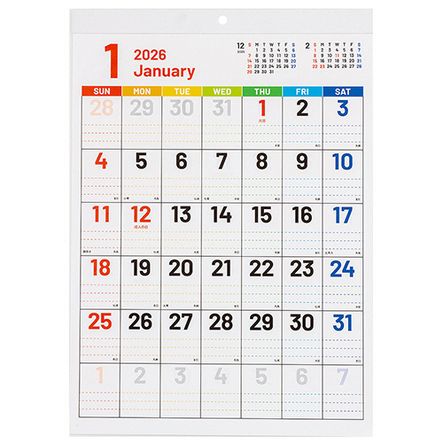 壁掛けカレンダー 文字月表SC(セブンカラー)/A3 2026年版 1冊