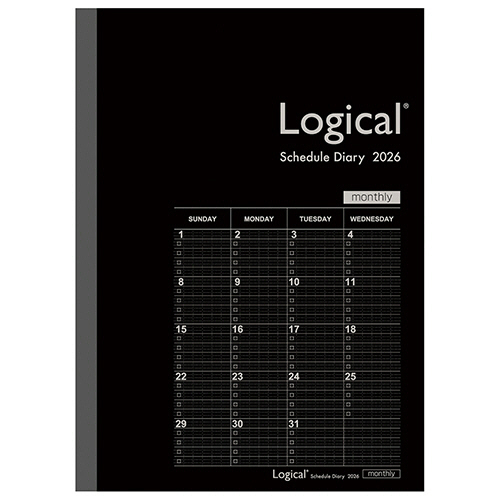 ●手書きの文字や図形を美しく見せることができるロジカル罫を採用した、日曜始まりのダイアリーです。B5サイズのブラックです。