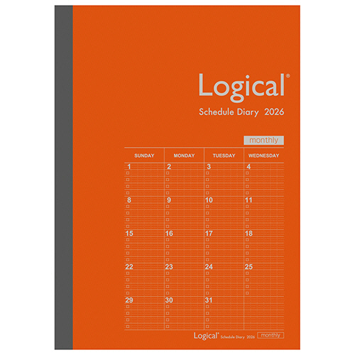 ●手書きの文字や図形を美しく見せることができるロジカル罫を採用した、日曜始まりのダイアリーです。A5サイズのオレンジです。
