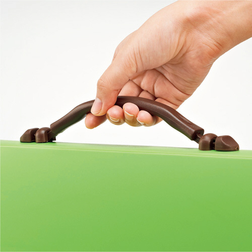 ●やわらかい樹脂素材を使用した持ち手は、内側が波を打つような形状になっており、指に心地よくフィットします。長時間持ち歩いても疲れにくく、すべりにくいのが特長です。