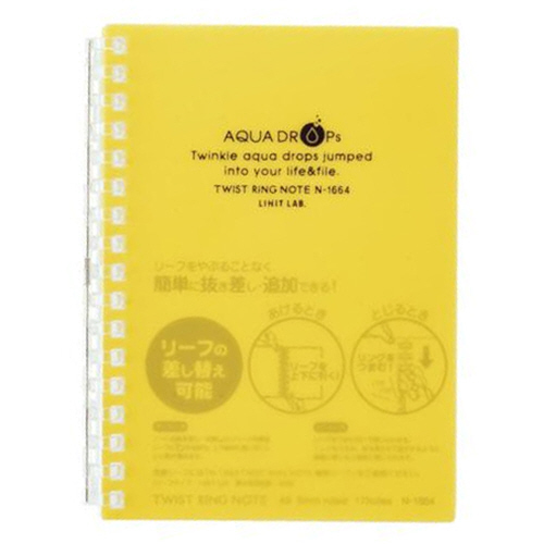 AQUA DROPs ツイストノート A6 17穴 B罫 リーフ30枚付属 黄 1冊 【5-8営業日遅延】
