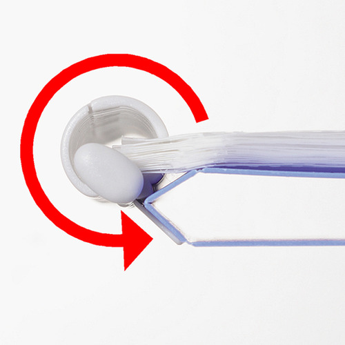 ●とじ具下部のボタンを押すと開き、とじ具をつまんで指を滑らせると閉じます。