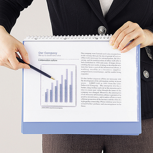 ●片手で折り返したままで持てるので、資料を空いた手で指し示しながらプレゼンができます。