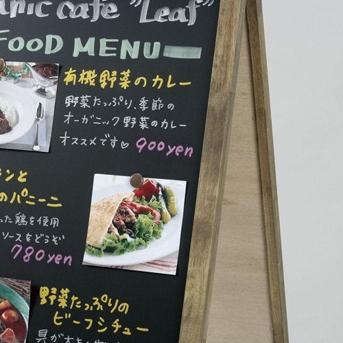 チョークでもマーカーでもかけて、マグネットも使える両面A型ボード。