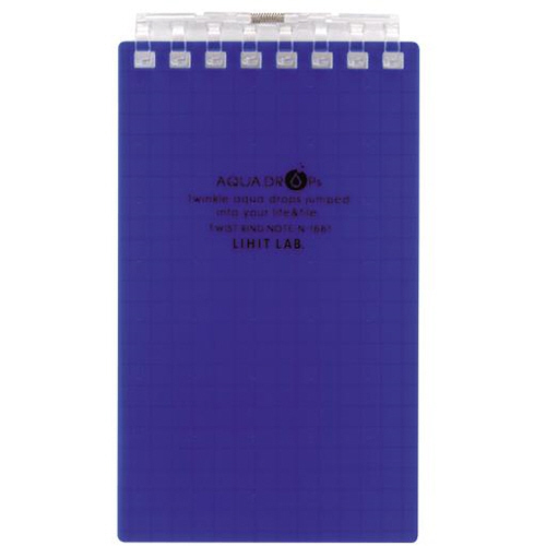 ●キラキラ光る水玉をイメージしたAQUA DROPsシリーズのツイストノート・メモサイズの表紙色は藍です。