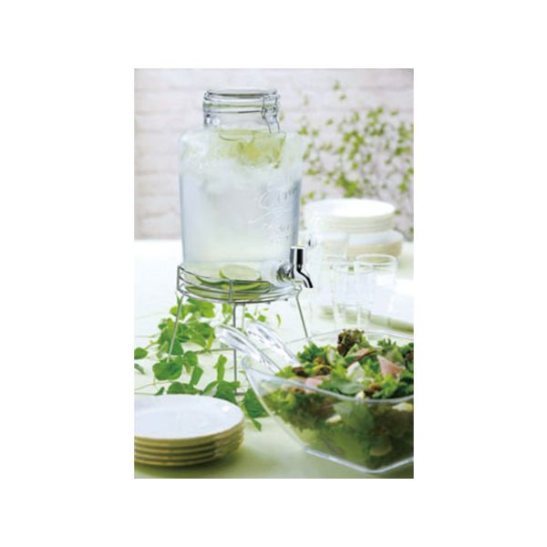 中身の飲料をキレイに魅せる、おしゃれなガラス製のドリンクディスペンサー。フルーツをたっぷり入れたデトックスウォーターなどにもおすすめ。カフェなどの飲食店でも対応できる大容量タイプ。スタンドは別売り。長辺×短辺×高さ:252×200×320mm重量:3105材質:ガラス、シリコン、ABSクロムメッキ、ポリプロピレン252×200×320mm