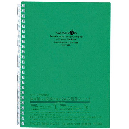 AQUA DROPs ツイストノート A5 24穴 B罫 リーフ30枚付属 緑 1冊 【5-8営業日遅延】