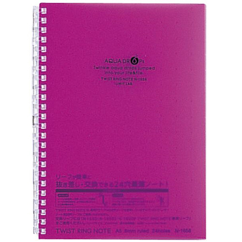 ●A5・リーフ30枚のツイストノート。表紙は藤色です。
