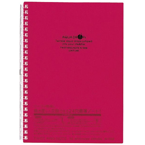 ●A5・リーフ30枚のツイストノート。表紙は赤色です。