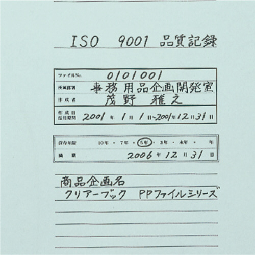 ●記入欄のある表紙で、書類の保存・検索に便利。(作成者・期間・保存年限・満期などが書き込める欄を表紙に印刷)