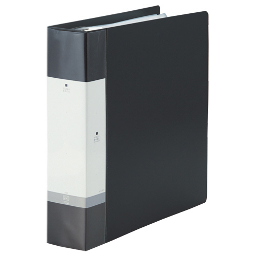 ●ポケットが抜け落ちにくいロック式金具を使用したクリヤーブック。最大収容枚数205枚の大容量タイプの黒です。
