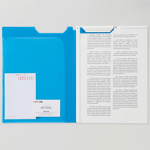 ●ハガキや名刺等が入る透明ポケット付のクリップファイル。カラーは乳白です。