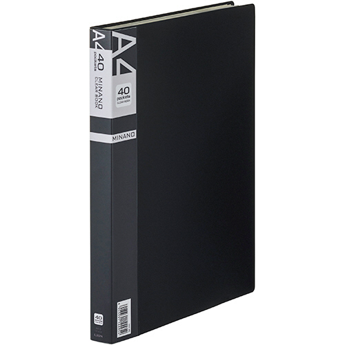クリアーブック MINANO(ミナノ) A4タテ 40ポケット 背幅26mm ブラック 1冊