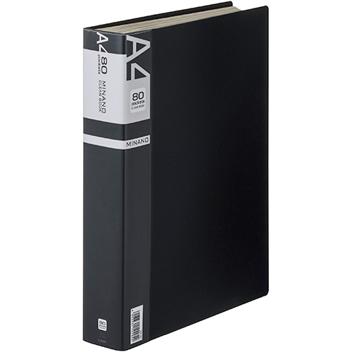 クリアーブック MINANO(ミナノ) A4タテ 80ポケット 背幅50mm ブラック 1冊