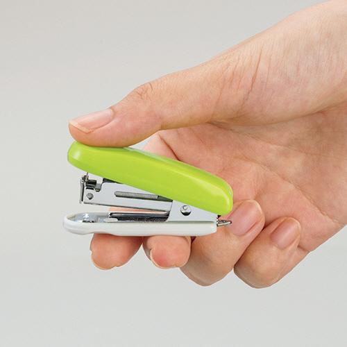 ●グリーンのミニタイプステープラ。