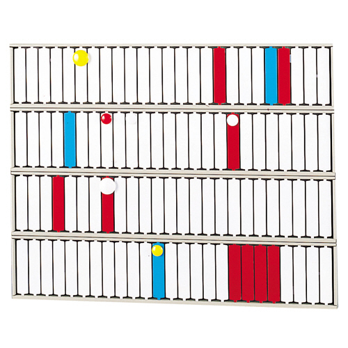 カラーによる視覚管理にも適した、標示札が回転する標示盤